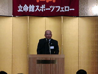 続く来賓挨拶では、國廣敏文 学校法人立命館常務理事が「立命館大学は、スポーツフェローと一緒になって立命館スポーツ憲章や各部のマネージメントについての連携と支援をやっていこうと考えています。スポーツフェローの皆様には、是非後輩のために大学のためにスポーツの振興のための基金という形で支援をしていただきたい。」旨祝辞されました。 |