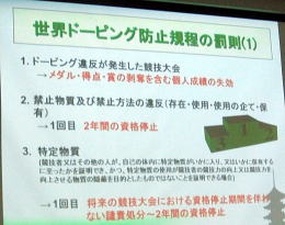 この人たちは2003年の静岡での国体以来、ドーピングガイドを作成したりして、ドーピング検査を開始しました。京都府にもたくさんおられます。 |