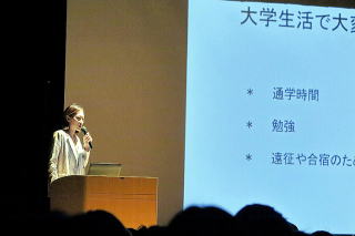 就職をして、このように講演をさせてもらったり、メディア関係のお仕事もさせてもらっているのですけど、何か挑戦するのにはすごく勇気がいるのです。社会人になって何かしたいなと思うときなかなか行動に移せなかったり、それでけっこう時間がかかったりして、タイミングが過ぎてしまったと思うことがあります。大学生活で極論を言えば、テストを受けて単位を取れば誰にも何も文句を言われないのです。その残りの時間を何をするか考えたときに、それぞれ何かを得て卒業してほしいと思います。ただ単位を得るだけでなくて友達を得るとか、あと何かする、何でもいいのですけど、部活をがんばり目標を達成する。何かを得て卒業してほしいと思います。