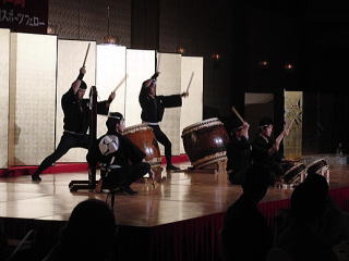 この後、國廣敏文 学校法人立命館常務理事・立命館大学スポーツ強化センター長の乾杯により歓談に入り、アトラクションとして、「和太鼓“ドン”」の皆様による演舞、立命館大学応援団・同チアー部の皆様による演舞と続き、最後は門川市長を始め立命館大学関係者がステージに上がり肩を組み、参加者全員と応援団の演奏により立命館大学応援歌を合唱して、会場内のムードは最高潮に!