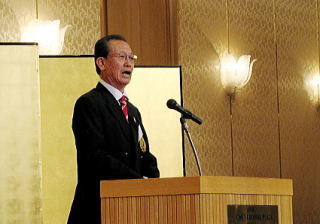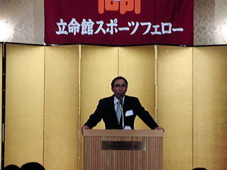 続く来賓挨拶では、國廣敏文 学校法人立命館常務理事が「立命館大学は、スポーツフェローと一緒になって立命館スポーツ憲章や各部のマネージメントについての連携と支援をやっていこうと考えています。スポーツフェローの皆様には、是非後輩のために大学のためにスポーツの振興のための基金という形で支援をしていただきたい。」旨祝辞されました。 |