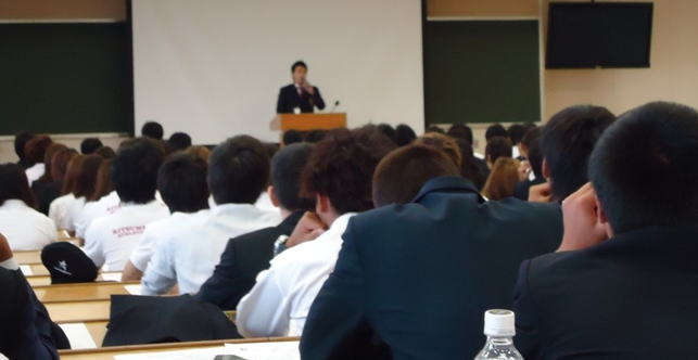 今日は皆さん、大切な話をいっぱい聞いたのですが、2020年東京オリンピックが決まりました。皆さんはスポーツをしているわけで、他の学生よりも数段充実して学生生活送れていると思います。それに今日聞いたコンプライアンスを足して、それぞれがスポーツに邁進して秋季リーグを勝ち抜いたら、さらに充実した学生生活を送れると思います。 |