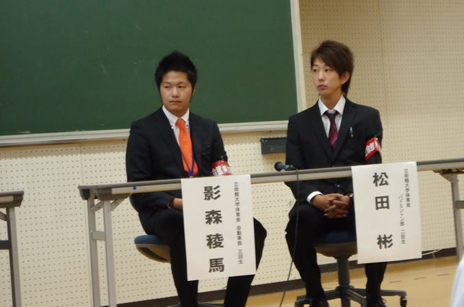 7年後の2020年、東京オリンピック、パラリンピックが開催されることとなりました。君たちアスリートにとっては、またとないチャンスです。学生、OB・OG、立命館大学をファンとしてくれる父兄の方、一丸となって頑張ろうではありませんが、7年後、立命館からすばらしいアスリートが生まれることを期待し開会の辞とします。 |