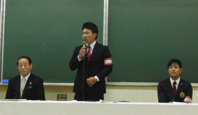 今日この場を設定していただいたOB・OGの方々、立命館スポーツフェローの方々に感謝をしていただきたいと思います。今日皆さんが学んだことは、学生だけではなくて社会人になってからも非常に大切なことです。これをいつまでも守っていただきたいと思います。 |