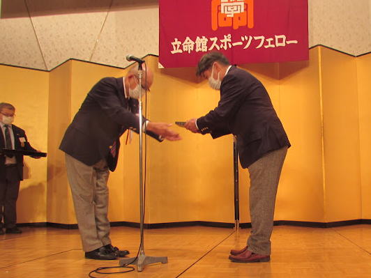 引き続き、新型コロナウイルスの影響により延期となっていた、2019年度及び2020年度立命館スポーツフェロー会長賞の授賞式が開催されました。
