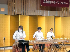 また、今年度から立命館スポーツフェローは、校友の皆様の熱い絆を作るきっかけとするため、スポーツだけでなく文化芸術に頑張っている学生の皆さんも披露することとし、「立命館大学邦楽部」及び「アカペラサークル」の皆様にご出演いただき、華やかなで盛況な懇親会となりました。