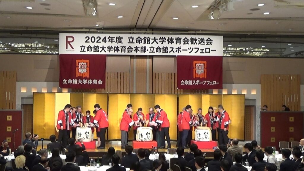 「立命館大学体育会歓送会」は、立命館大学体育会所属の4回生の功績を讃えるとともに、様々な成果を挙げた選手の表彰、そして、卒業生を立命館スポーツフェローの会員として迎えることを目的に、立命館大学体育会本部と立命館スポーツフェローの共催により盛大に開催しています。