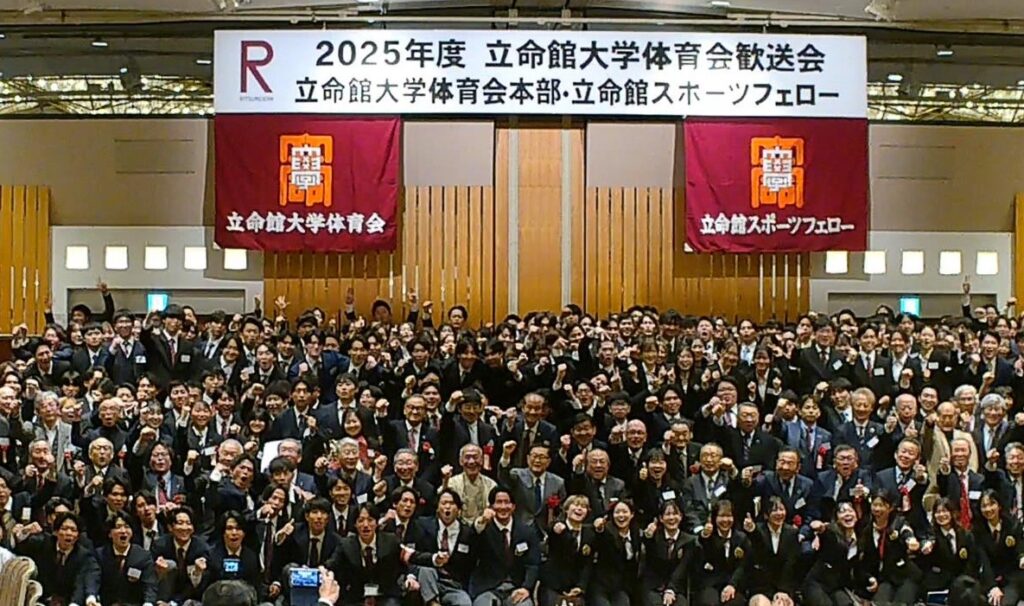 「立命館大学体育会歓送会」は、立命館大学体育会所属の4回生の功績を讃えるとともに、様々な成果を挙げた選手の表彰、そして、卒業生を立命館スポーツフェローの会員として迎えることを目的に、立命館大学体育会本部と立命館スポーツフェローの共催により盛大に開催しています。